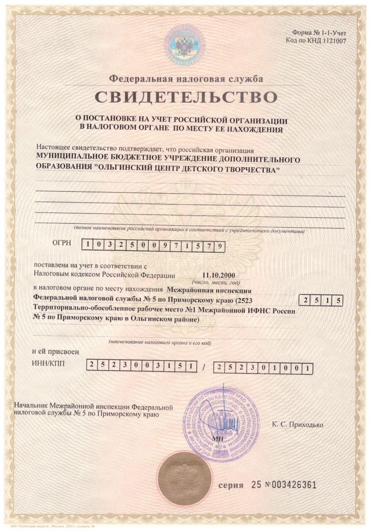 | Полное наименование | Муниципальное бюджетное учреждение дополнительного образования «Ольгинский центр детского творчества» |
